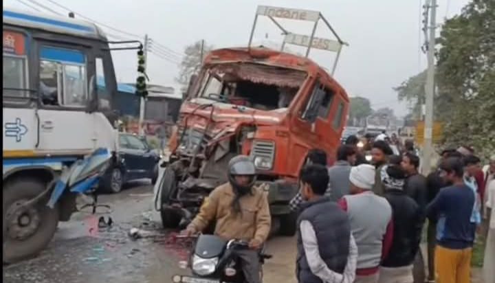 बेवर-भोगांव जीटी रोड पर रोडवेज बस और इंडेन गैस टैंकर की आमने-सामने टक्कर, कई घायल