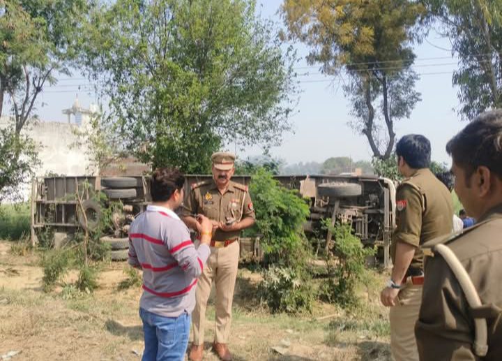 जीटी रोड पर कंटेनर पलटा, ड्राइवर व कंडक्टर गंभीर घायल