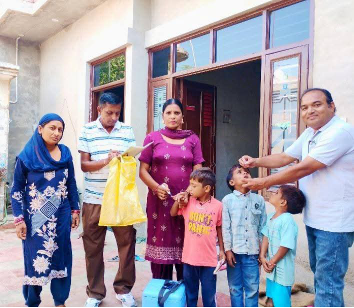 देश को पोलियो मुक्त बनाए रखने के उद्देश्य से पूरे देश में चलाए जा रहे पल्स पोलियो अभियान के तहत आज फाजिल्का जिले में स्वास्थ्य विभाग के कर्मचारियों ने अपनी ड्यूटी के दौरान सराहनीय कार्य किया। यह अभियान बच्चों को घातक रोग पोलियो से बचाने के लिए एक महत्वपूर्ण कदम है, जिसमें शून्य से पाँच वर्ष तक के बच्चों को पोलियो की खुराक दी जाती है।
